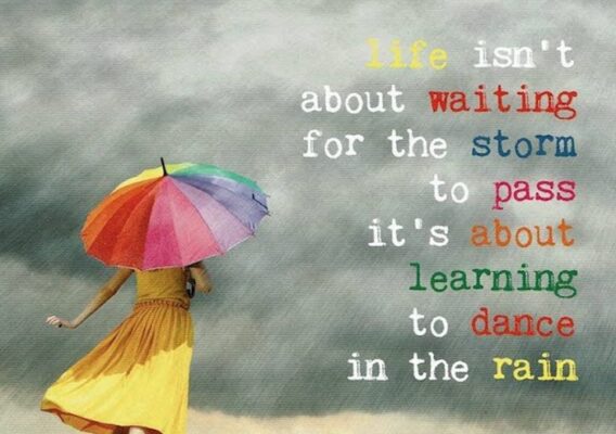 • Life isn’t about waiting for the storm to pass. It’s about learning to dance in the rain: Cuộc sống của mỗi người không phải chỉ chờ đợi cho cơn bão qua đi. Thay vào đó, bạn hãy học cách lạc quan “khiêu vũ” với mưa ở trong giông bão.