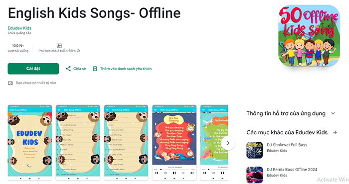 Ứng dụng này phù hợp với mọi lứa tuổi của trẻ, cha mẹ có thể hoàn toàn an tâm. Hiện tại, English Kids Songs đang có trên hệ điều hành Android có dung lượng 29M với hơn nửa triệu lượt tải về trên kho ứng dụng Google Play.