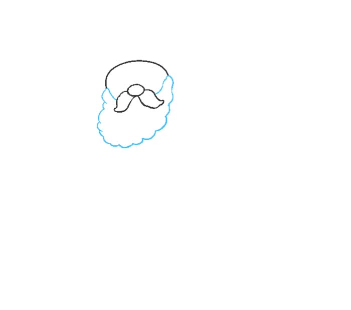Bước 3: Tạo hình phần ria của ông già Noel bằng những nét cong uốn lượn và xóa đường viền hình bầu dục giao với bộ ria.
