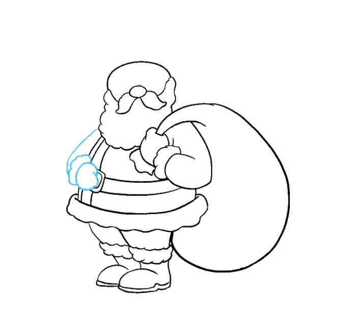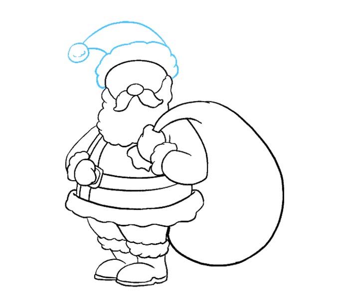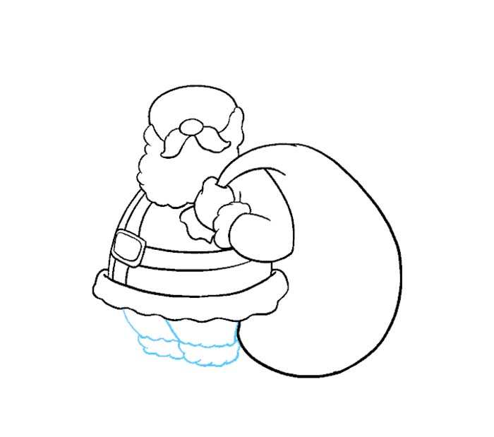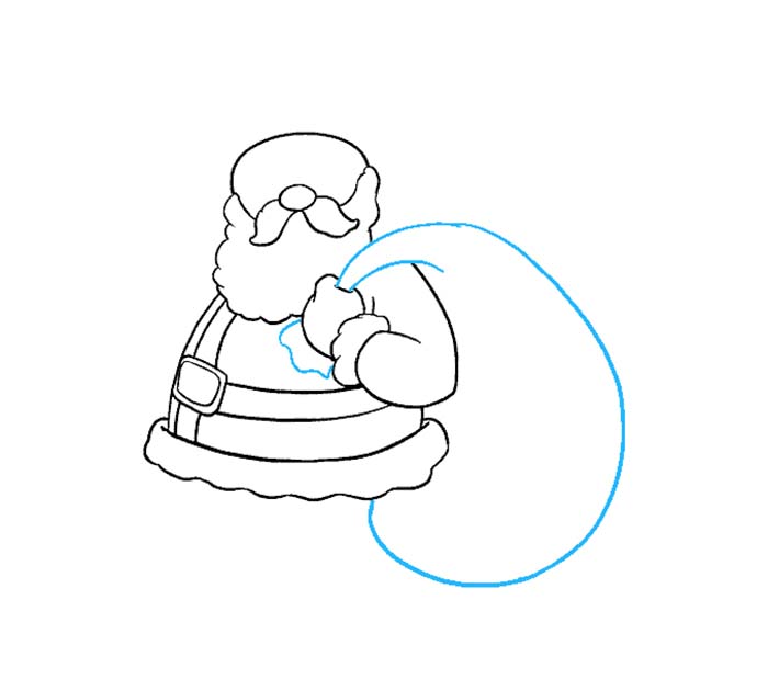 Bước 9: Bước tiếp theo, vẽ bao đựng quà cho ông già Noel bằng những đường lượn sóng.