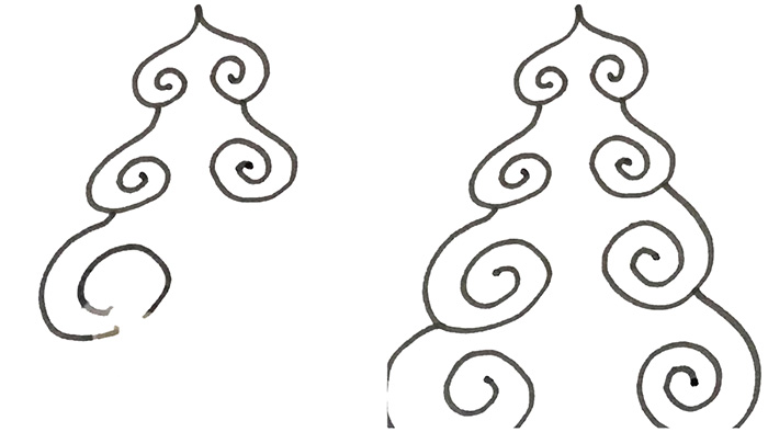 Việc tiếp theo là vẽ một thân cây tương tự bằng hai đường nét song song rồi trang trí ngôi sao hoặc hạt châu lên tán lá là hoàn thành.