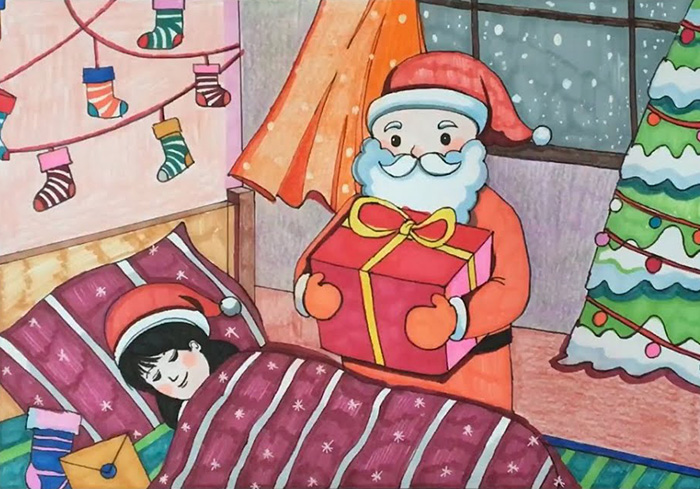 3.2. Vẽ tranh Noel chủ đề ông già Noel phát quà