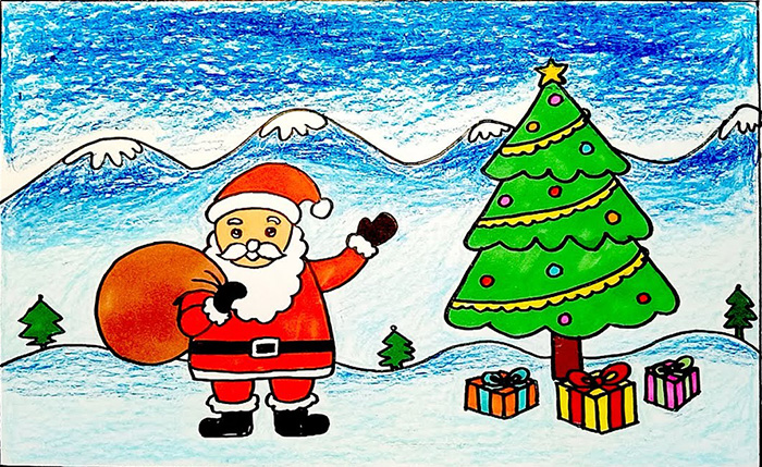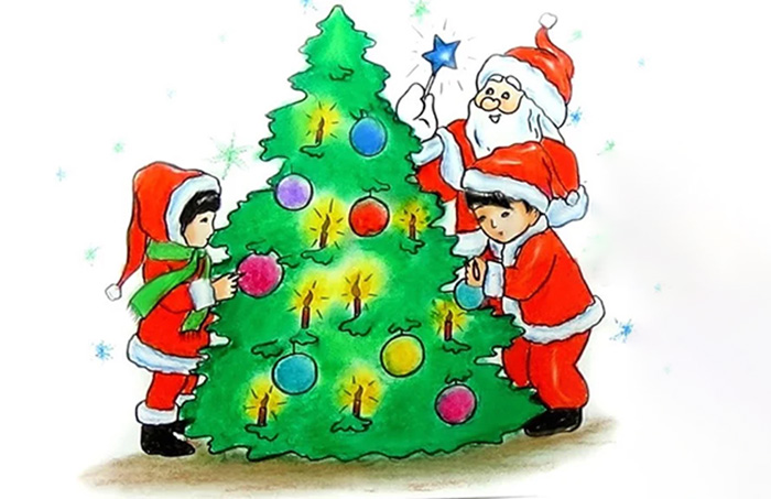 Cây thông và ông già Noel đều là biểu tượng đặc trưng của mùa Giáng sinh. Vì vậy khi vẽ tranh Noel chắc chắn bé không thể bỏ qua. Dưới đây là những bức tranh sáng tạo và ý nghĩa. Hy vọng, sẽ tạo nên cảm hứng giúp các em có ý tưởng độc đáo cho tác phẩm của mình.