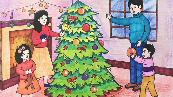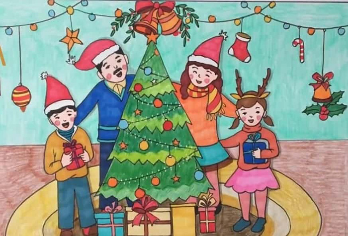 3.1. Vẽ tranh Noel chủ đề gia đình quây quần bên cây thông