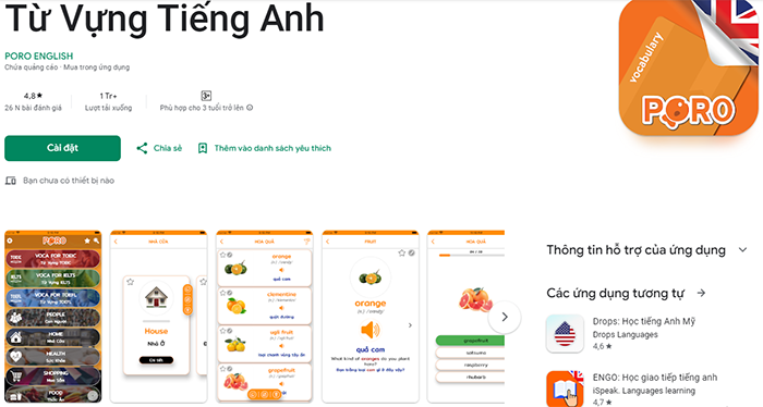 PORO English là ứng dụng học từ vựng tiếng Anh hàng đầu cho trẻ