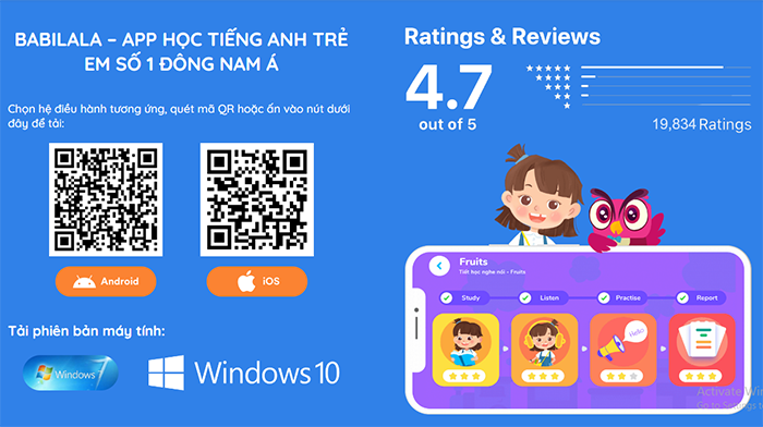 Phần mềm dạy tiếng Anh cho trẻ em Babilala nhận được nhiều đánh giá tích cực từ phụ huynh
