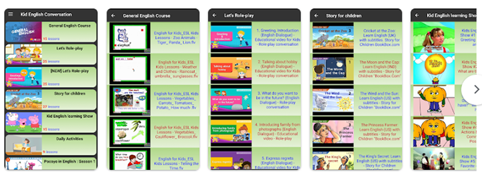 Learn English Kids: Playtime chứa hơn 100 câu chuyện hoạt hình tiếng Anh chất lượng để bé tha hồ rèn luyện. Trẻ có thể cải thiện phát âm qua những câu chuyện cổ tích như Goldilocks, Little Red Riding Hood, Jack and the Beanstalk,… Mỗi video đều có chế độ bật/tắt phụ đề, tùy theo mục đích học tập mà bố mẹ tùy chỉnh phù hợp cho bé.