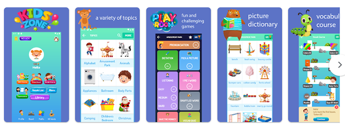 English for Kids là ứng dụng cải thiện kỹ năng phát âm tiếng Anh cho trẻ phổ biến hiện nay. Bé được rèn luyện từ vựng thông qua câu chuyện hoạt hình theo các chủ đề như bộ phận trên cơ thể, rau củ, thời tiết, truyện cổ tích,… Với những câu thoại hài hước, vui nhộn giúp bé ghi nhớ âm điệu từ vựng tốt hơn.