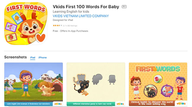 Phần mềm này cung cấp cho trẻ 500 từ vựng thông dụng nhất