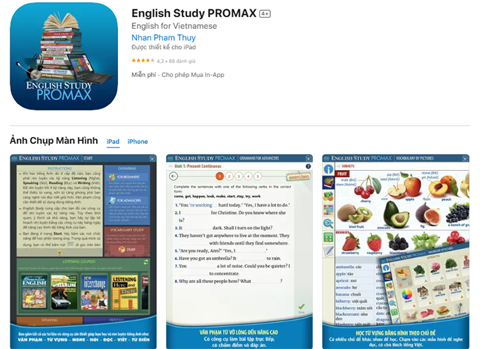 English Study ProMax được coi là bộ từ điển có giao diện sử dụng dễ dàng cùng cách phát âm chính xác. Ứng dụng đặc biệt phù hợp với những bé muốn mở rộng vốn từ vựng của mình.
