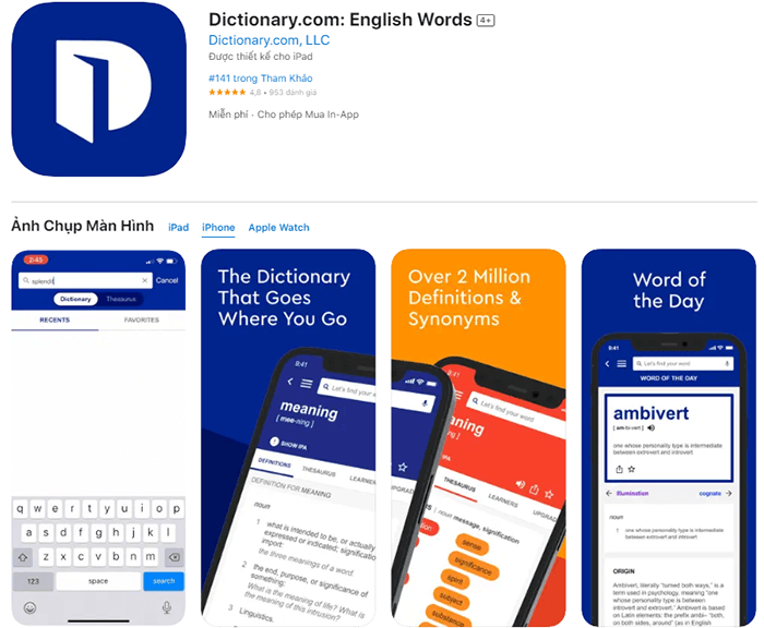 Dictionary.Com là một trong những app học ngoại ngữ miễn phí hàng đầu trên iOS. Với nguồn dữ liệu được cập nhật ngay từ trang chủ của Dictionary, bé sẽ nhanh chóng tìm kiếm được những từ vựng cần thiết để học tiếng Anh.