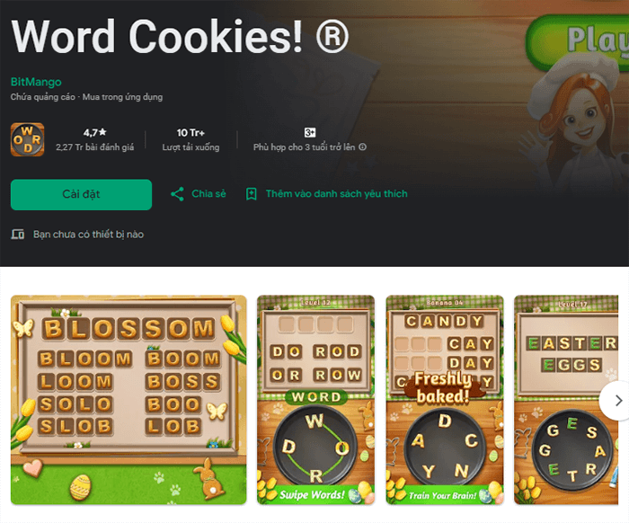 Word Cookies là một trò chơi vô cùng thú vị và cuốn hút đối với trẻ em. Các bé sẽ được làm quen với việc kiểm tra giới hạn chính tả và từ vựng của mình thông qua vô vàn thử thách nhằm tạo ra nhiều từ nhất có thể.
