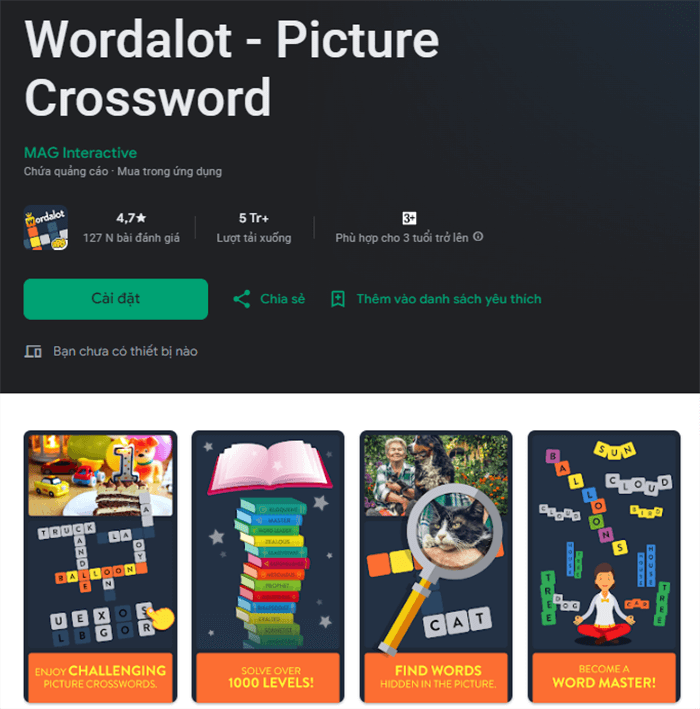 Wordalot là game giải câu đố với hơn 1.000 cấp độ từ đơn giản đến nâng cao, thách thức não bộ các bé hoạt động tối đa trong mỗi lượt chơi. Game cung cấp kiến thức cho trẻ, đồng thời còn giúp các bé học từ vựng tiếng Anh ghi nhớ được lâu hơn.