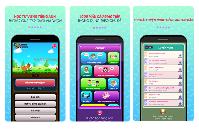 Bucha là phần mềm học tiếng Anh offline miễn phí với phương pháp “HỌC MÀ CHƠI – CHƠI MÀ HỌC”. Khi học, bé sẽ vượt qua các trò chơi về từ vựng, ngữ pháp mẫu câu. Bucha có giao diện tương tự như một trò chơi với các cấp độ phải vượt qua. Bé chỉ cần dành một ít thời gian mỗi ngày để chơi game là đã có thể học thêm rất nhiều kiến thức. Bucha được rất nhiều trẻ em yêu thích nhờ những ưu điểm nổi bật: