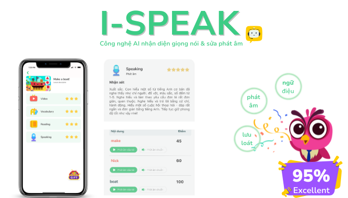 Công nghệ iSpeak của Babilala có thể nhận diện được cả các từ ngắn khi phát âm. Do vậy, tỷ lệ sai lệch khi chấm điểm luôn ở mức thấp nhất. Dựa trên số điểm phát âm của từng từ, chúng ta biết được con phát âm tốt ở từ vựng nào, từ nào con cần luyện tập để cải thiện thêm. Thông thường, các ba mẹ nên lọc ra các từ dưới 70 điểm và hướng dẫn con phát âm lại dựa trên file nghe phát âm mẫu.