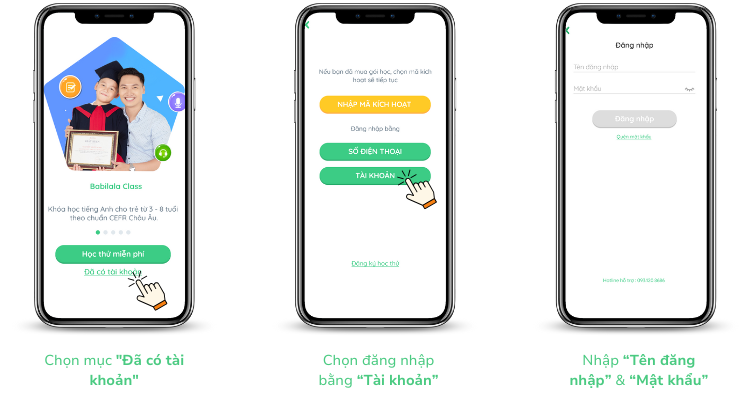 – Nếu đã mua gói học và kích hoạt mã: Ba mẹ chọn “Đã có tài khoản hoặc mã kích hoạt”, đăng nhập bằng “Số điện thoại”.