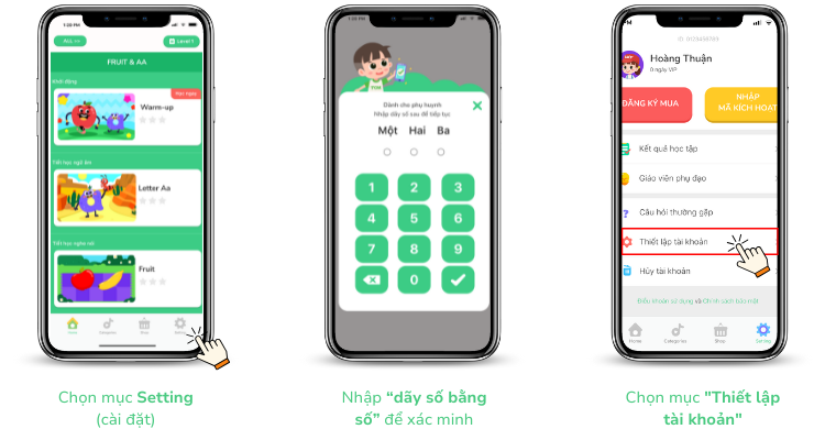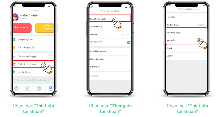 Ba mẹ hoàn toàn có thể thay đổi mật khẩu tài khoản, bằng cách truy cập vào mục “Thiết lập tài khoản” và thực hiện theo hướng dẫn ở phần 1.
